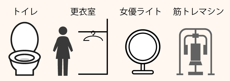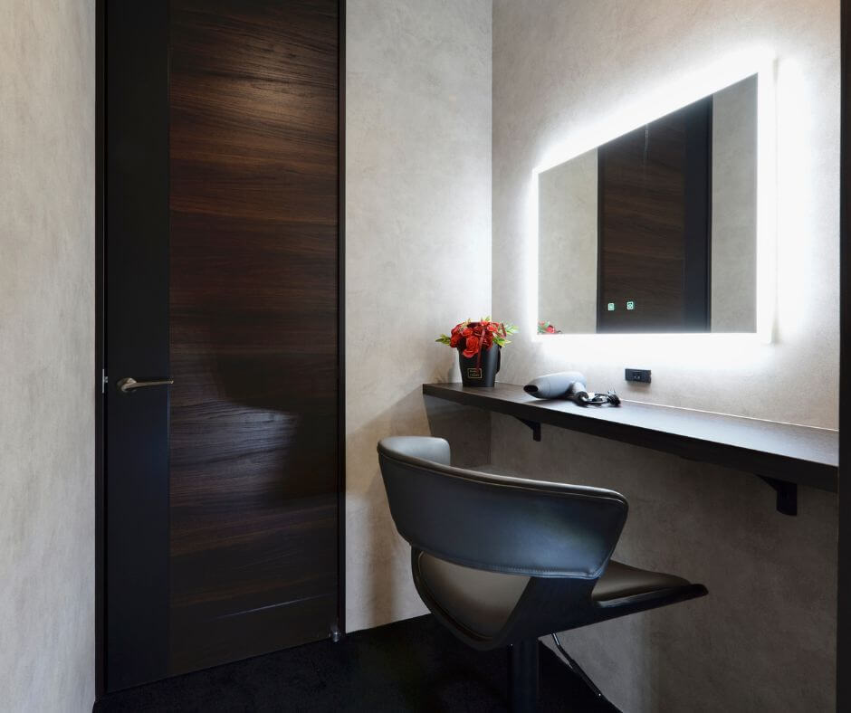 ございます。そのほか、女優ライトや大きな鏡のあるパウダールームを完備しておりますので、練習後のメイク直しにぜひご利用ください。