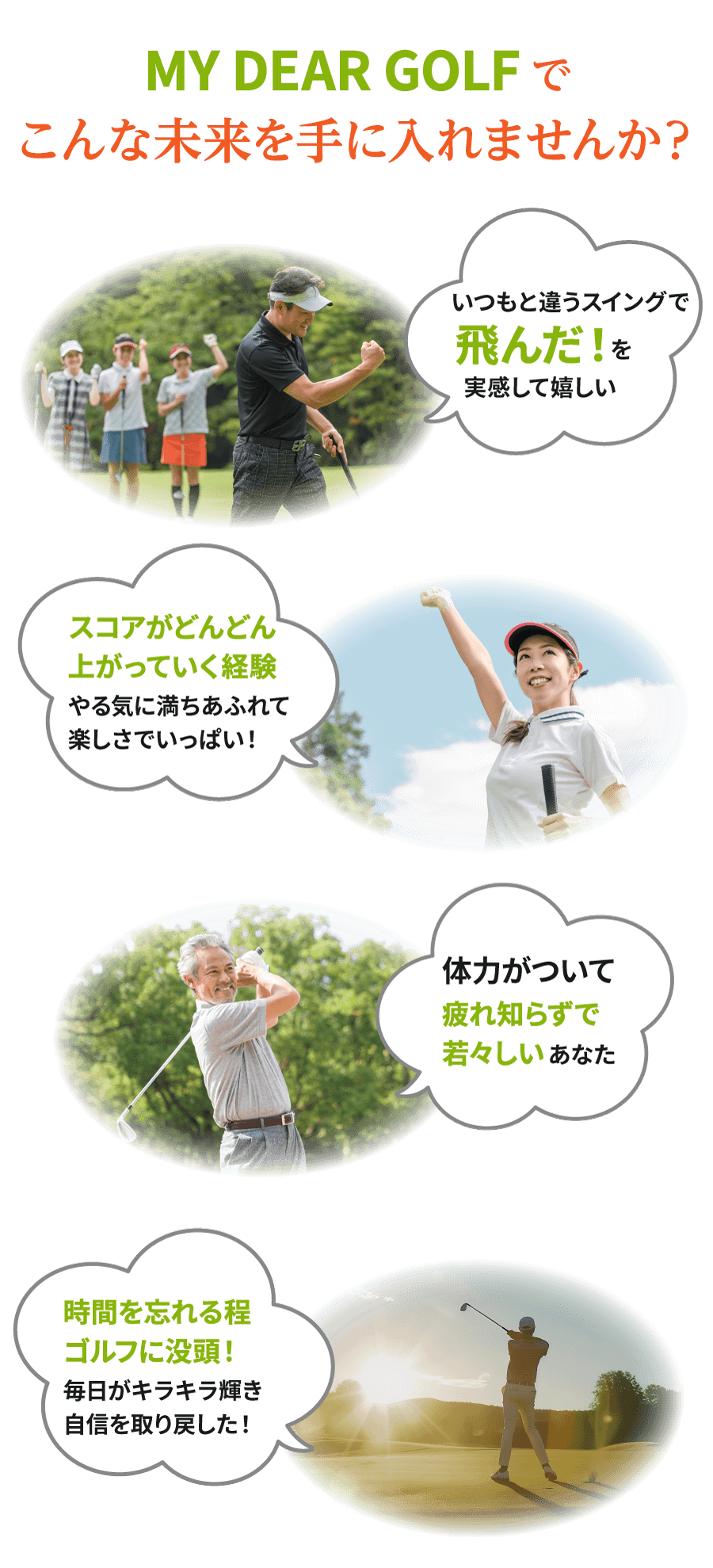 ゴルフがもっと楽しくなるレッスンです。まずはスイングやショットを見させていただき、改善点をアドバイスさせていただきます♪