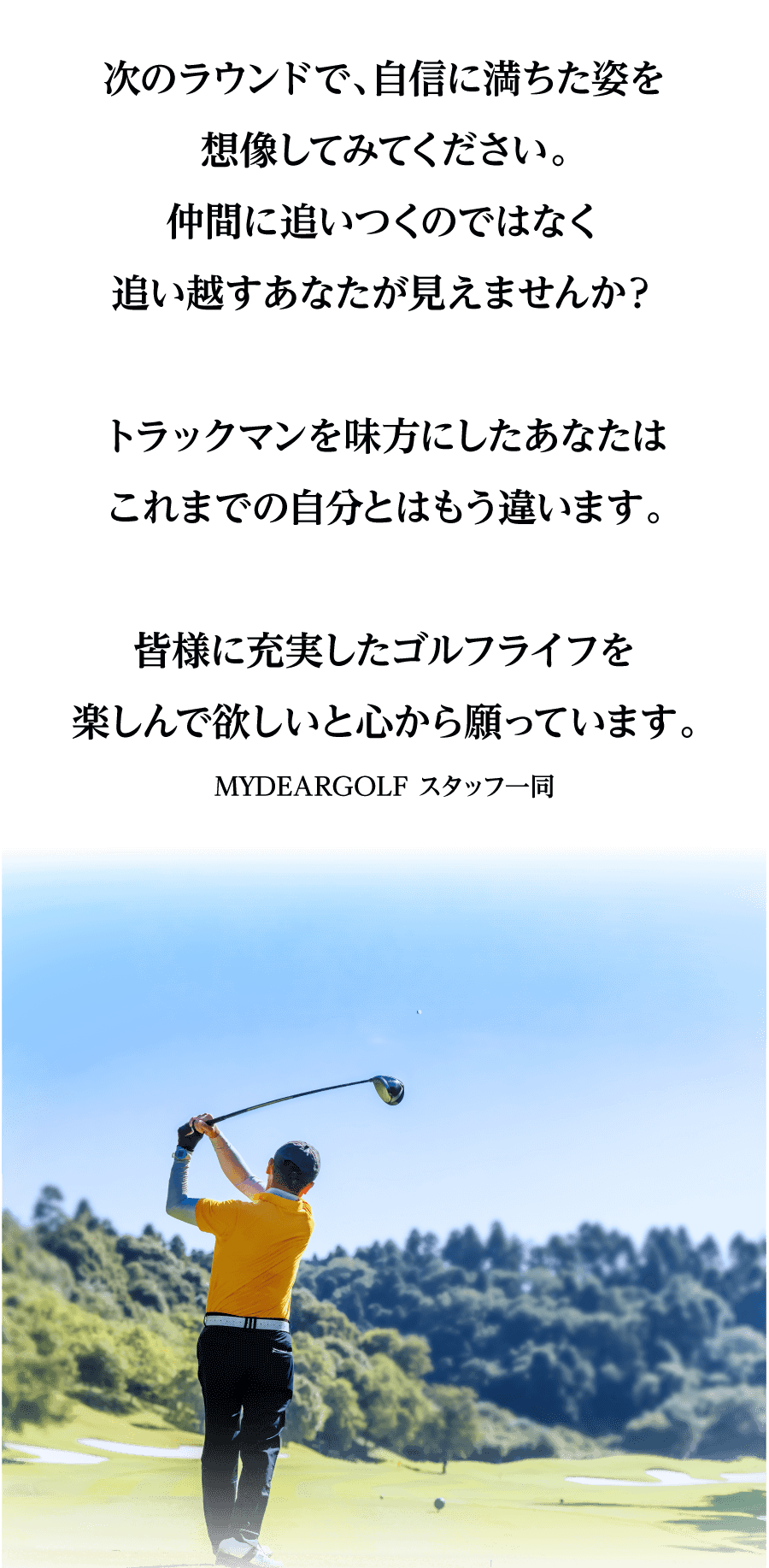 「飛距離が伸びればゴルフはもっと上達して楽しい」と、一人でも多くの方に実感していただけますように。