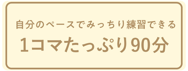 1コマたっぷり90分間を確保していますので、経験年数に関わらずじっくり練習に打ち込める環境が好評です。